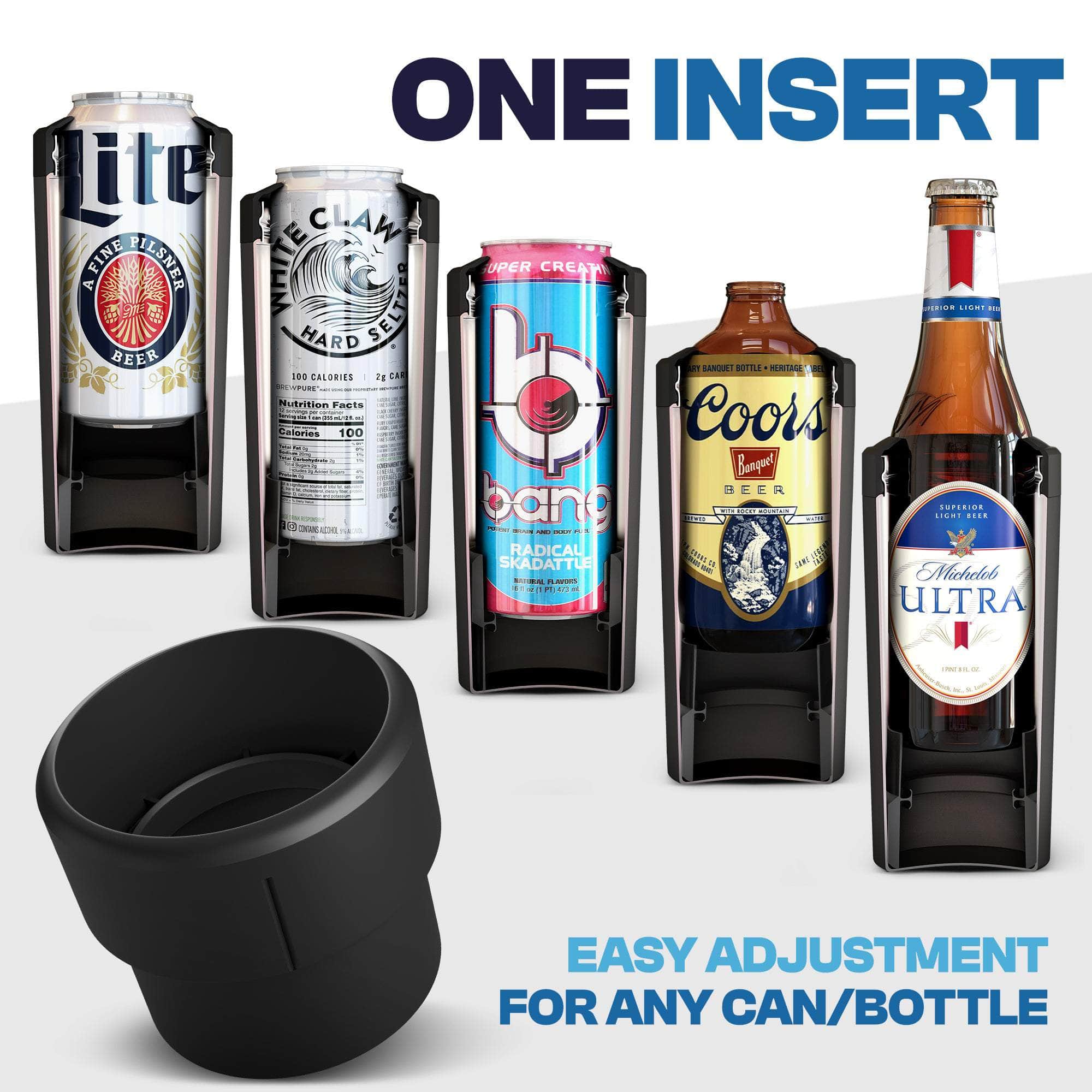 ONE SIZE REALLY FITS ALL! Introducing the all new Universal Buddy XL where size truly doesn’t matter. Now fits 12OZ CANS, SLIM CANS, BOTTLES, 16OZ CANS & BOTTLES, along with 20oz BOTTLES & 24oz CANS!